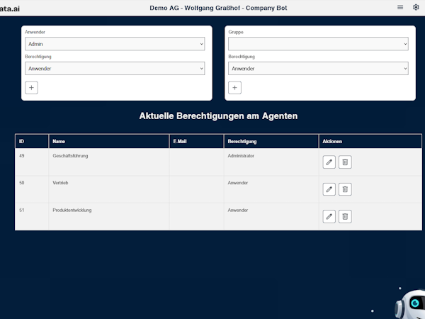 Berechtigungen und Rollenverteilung für jeden Mitarbeiter steuerbar. Sensible Daten bleiben geschützt, Prozesse und KI—Tools können nur von Administratoren geändert werden. In Deutschland gehostet und mit passenden KI—Modellen für alle Sicherheitsanforderungen. Auch eigenes Hosting möglich.