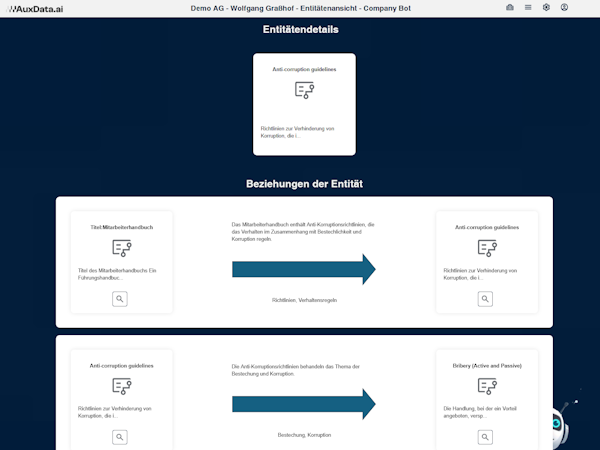 AuxData.ai geht weit über herkömmliche RAG Systeme hinaus. Mit der integrierten Wissensdatenbank basierend auf Context Enrichment und Wissensgraphen findet die Plattform immer die richtige Lösung.